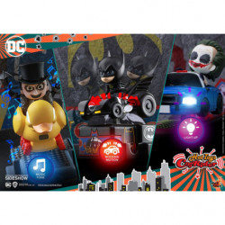Combining the vintage coin-operated amusement ride in our childhood memories and the iconic driving scenes from the classic productions in DC universe, CosRider collectible has skillfully transformed the characters' appearance and their distinctive vehicles into an adorable line-up.