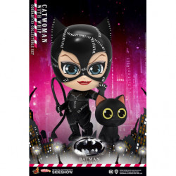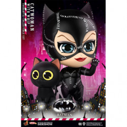 When the bizarre, sinister Penguin plot to take control of Gotham City, only the legendary hero Batman can stop him, while the mysterious Catwoman has her own agenda. Sideshow and Hot Toys present the Catwoman with Whip Cosbaby(S) Collectible Set based on Tim Burton's 1992 superhero film Batman Returns. Each Cosbaby stands approximately 12 cm tall with a rotatable head and themed figure base.