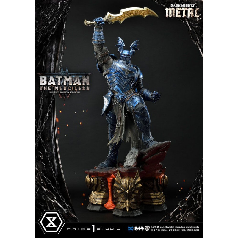 We have captured The Merciless in the most iconic of poses based on the concept by the revered Comic Artist, Jason Fabok. Batman stands 44 inches tall upon a rocky-volcanic themed base. The Merciless holds the infamous God Killer sword high and mighty, ready to destroy anyone who crosses his path.