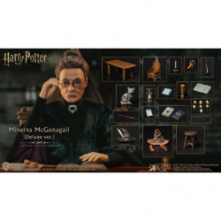 This 1/6 scale figure of Professor McGonagall features an authentic likeness of Maggie Smith and an accurate film costume. She comes with the Sorting Hat, her transfiguration cat form, a stool and other assorted accessories.