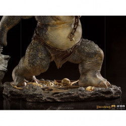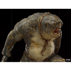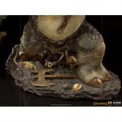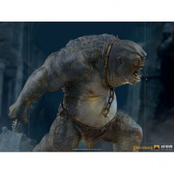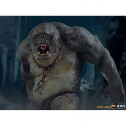 Deep in the caves of Moria, in a marble mausoleum where the Tomb of Balin is located, the dwarf warrior who is Gimli's cousin, brave warriors prepare for combat, to the sound of Orcs drums and the warning of the Captain of Gondor Boromir for closing the chamber doors ... "A Cave Troll". Thus, in the midst of an attack by a horde of Orcs, the monstrous ape-like / reptilian-looking monstrous humanoid of Tolkien's works was presented in the vision of director Peter Jackson in Lord of the Rings: The Fellowship of the Ring, and now armed with his war hammer, collar and bondage chain to the Orcs of Sauron, he will invade the collection of fans and collectors with his impressive statue "Cave Troll Deluxe BDS Art Scale 1/10 - Lord of the Rings" from Iron Studios.