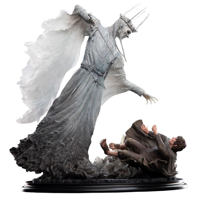 Any hope of rest is soon shattered when a Nazgûl scream pierces the air: the enemy has found them! Frodo, Sam, Merry and Pippin are surrounded by five black-cowled Ringwraiths as they huddle amid the broken stones, swords drawn. But the Halflings are no match for the Wraiths, who bat Frodo's companions aside with disinterest as the Witch-king, their lord, advances on the stumbling Ringbearer.