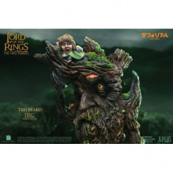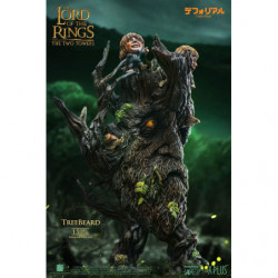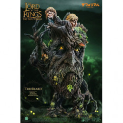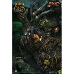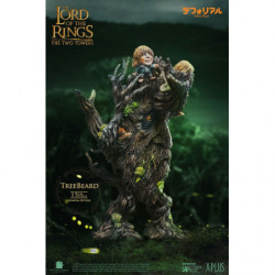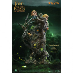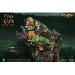 This Defo Real figure of Treebeard is posed striding through the forest, determined to save his beloved trees from the Orcs, with Marry and Pippin riding along in his branches. This figure is made of polyresin and stands 15 cm tall. He ships protected in a closed art box.