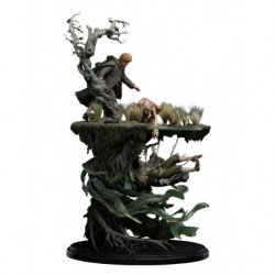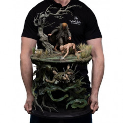 Capitalizing on the environment's mystical nature, and undead spirits haunting the waters below, we wanted to display the two worlds that often overlap in Middle-earth: the magical and the mundane. Above the waters, Sam and Gollum desperately reach out to rescue the sinking Hobbit. Below the waters, wraiths pull Frodo further into the depths. Representing those two contrasting worlds in one scene proved pivotal in creating this collectible.