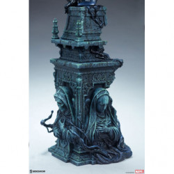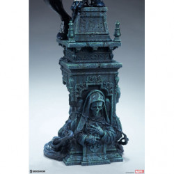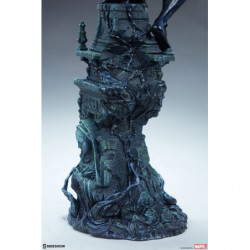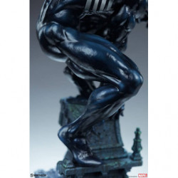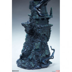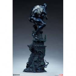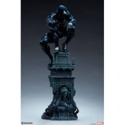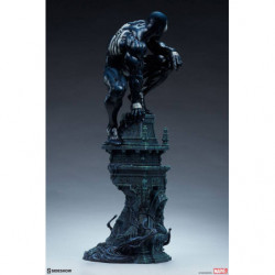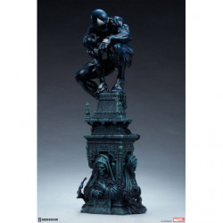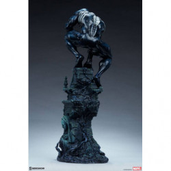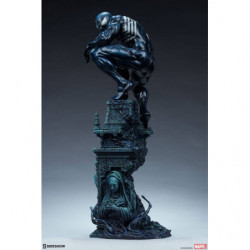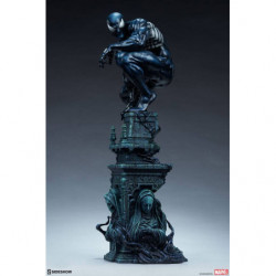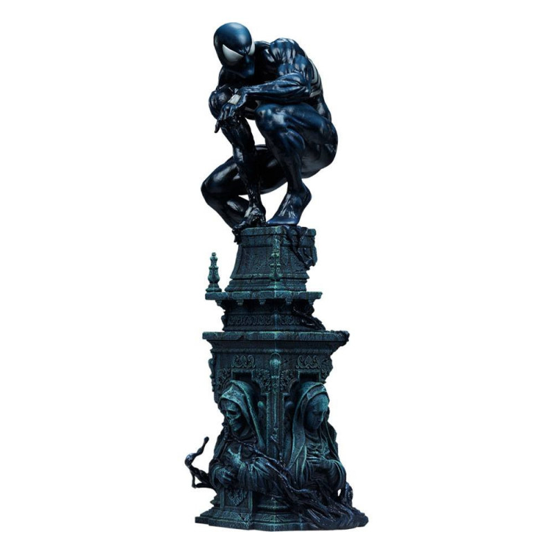 The Symbiote Spider-Man Premium Format&trade. Figure measures 24" tall as everyone's favorite wall crawler crouches atop a crumbling church bell tower. Tendrils of the Klyntar symbiote substance wind their way up the detailed tower base, eager to reunite with their host. The tower beneath him features realistic stonelike textures as well as crumbling reliefs depicting a weeping woman and a skeletal figure.