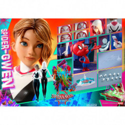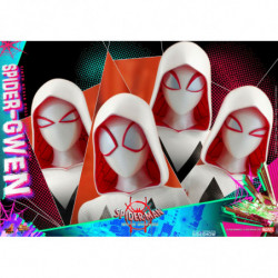 Based on the appearance of Spider Gwen in the movie, the highly-accurate figure features a newly developed head sculpt with incredible likeness of Gwen Stacy, a masked head sculpt with multiple pairs of interchangeable eyepieces to create different expressions, a newly developed body, teal ballet shoes with white, black and pink web patterned suit in meticulous tailoring and great details. The amazingly detailed accessories include a Spider-Ham sixth scale figure sticking out his hand, Spider-Gwen's mask, smartphone, mirror case, physics book, assorted web accessories, comic art inspired character backdrop, also a dynamic figure stand for aerial poses.
