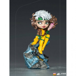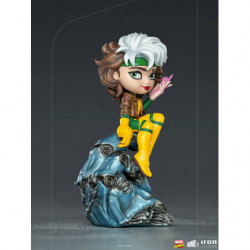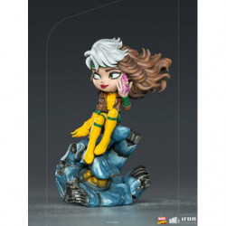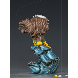 "Rogue - X-Men - MiniCo - Iron Studios" statue shows the young Anna Marie, better known as Rogue, sitting on the hand of a destroyed Sentinel. She gazes passionately at her teammate Gambit while, by touching her face, absorbs her beloved teammate's thoughts and feelings through the hero's psionic energy. With the mutant power to absorb vital and psychic energy from others through skin-to-skin contact, she absorbed some of Captain Marvel's cosmic alien powers acquiring super-strength, invulnerability, and the ability to fly.