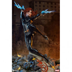 Based on her Marvel Comics appearance, the Black Widow Premium Format Figure is fully sculpted to capture the grace and dexterity of our heroine as she makes her daring escape. Natasha's costume is sculpted with realistic textures and painted with a glossy black to recreate the look of a sleek catsuit accented with a gold belt and her bracelets. Her portrait features a look of fierce determination, and from the top of her red head to the bottoms of her sculpted boots, Black Widow is ready to fight for a better future.