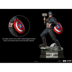 In the final fight to reverse the decimation of half of life in the universe caused by the fearsome Thanos, Steve Rogers wields Thor's mystic hammer Mjölnir, showing himself as worthy, along with his inseparable, yet damaged, shield. From his origins fighting in World War II, until his rebirth, when he was rescued by S.H.I.E.L.D. after being frozen for decades, and his union and leadership as head of the Avengers, to his rebellion against a system corrupted by the evil Hydra organization, his entire trajectory led him to this moment. Masterfully replicated and presented by Sideshow and Iron Studios in the Captain America - Infinity Saga - Legacy Replica 1:4 Scale Statue, which celebrates more than ten years of the Marvel Cinematic Universe.