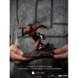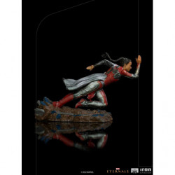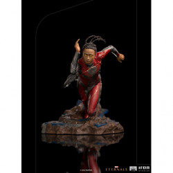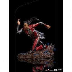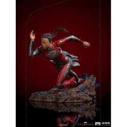 therefore she can perceive the world around her moving in slow motion. Dressing a red armor in a pose that emulates high speed, Iron Studios bring the statue "Makkari BDS - Eternals - Art Scale 1/10", with the fastest woman in the universe member of the Eternals team.