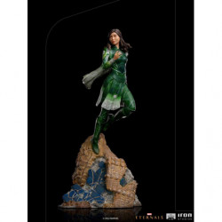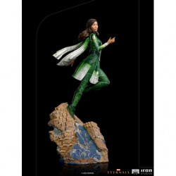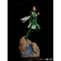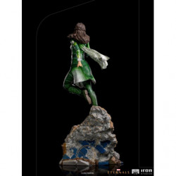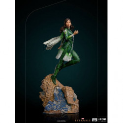 Gifted with the power of matter transmutation, capable of altering the composition of any material she touches, she even surprised all her Eternal companions when she transformed a Deviant monster into a tree because she should only be capable of transmuting non-sentient materials, indicating an even greater potential for her powers. With a positive personality, nice, but also discrete, she fell in love with her Eternal partner called Ikaris, with whom she married and stayed together for centuries, but conflicting ideals led them to go separate ways and her love for humans made her get closer and interact even further with beings from Earth. Equipped with her green celestial armor, jumping over a pedestal of ancient rocks, Iron Studios bring the statue "Sersi BDS - Eternals - Art Scale 1/10", with the transmuter hero and defender of humanity from Eternals.