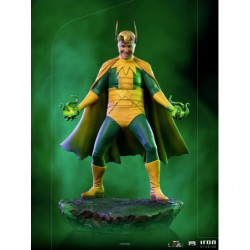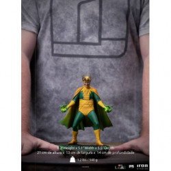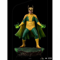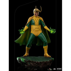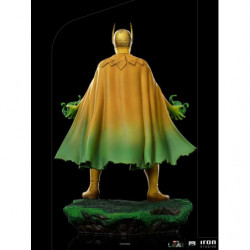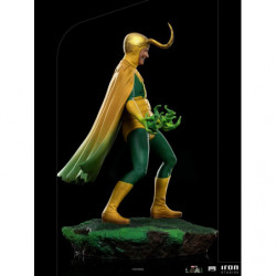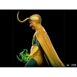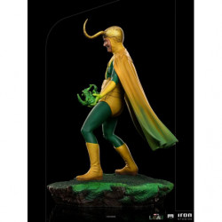 As the Asgardian sorcerer master, his magic deeds are seen by others as nearly impossible, and at the height of his abilities, with pure mystic energy hatching from the palms of his hands, the experient God of Mischief's figure with green and yellow leotard suit, yellow cape, and golden helmet with horns, uses his power to the fullest on a pedestal of the Void's plains terrain, creating an illusion as a trick to call the attention and deceive the trans-temporal entity guardian of the Void named Alioth. With an audacious smile on their face, Iron Studios bring the statue "Classic Loki Variant BDS - Loki - Art Scale 1/10", presenting Thor's fearless adoptive brother, inspired by his classic version in the comics, presented in the Loki series from the streaming service Disney+.