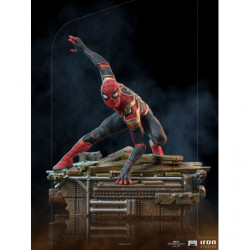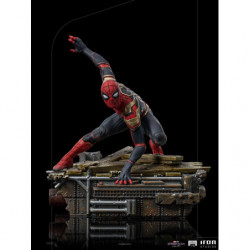 Although still a teenager, but already with great experience acting alongside the Avengers, the charismatic web-shooter-hero faces one of the darkest and most tragic moments of his life. To overcome his biggest challenge, facing villains from alternate worlds, he receives help from two older versions of himself, coming from these universes to help him rescue and heal the insanity of their enemies, and return with them to their respective original worlds. Using his refined and updated integrated/hybrid suit developed using Tony Stark's technology, in the blue, red, and black colors with golden details, the youngest Peter Parker, original from this world in the MCU universe, nicknamed among his alternate older "brothers" as Peter-One, gets ready to jump for action on a pedestal formed of wood and metallic structures from a scaffold on the Liberty Island in New York, Iron Studios present the statue "Spider-Man Peter-One BDS - Spider-Man: No Way Home -Art Scale 1/10", inspired by the movie on which the young actor completes his trilogy of movies in the role of this iconic hero from Marvel, part of Phase Four in the MCU.