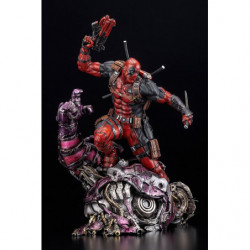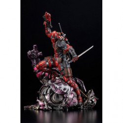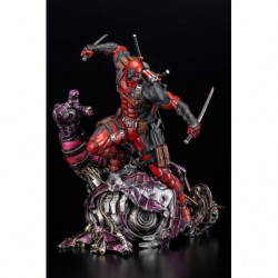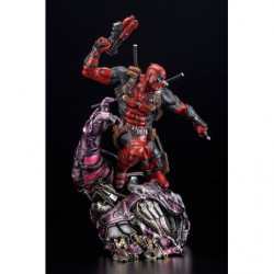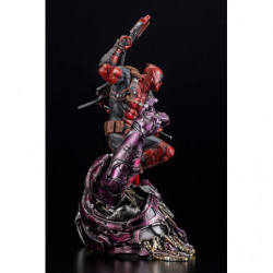 Deadpool is Cable's longtime ally and has recently become one of the most popular mutants of all time. He has been sculpted with overwhelmingly high precision in 1/6 scale. Holding two katanas in a peerless stance and stomping on a struggling Nimrod, the statue expresses his majestic victory against the enemy in a large, dynamic sculpture measuring over 36 cm in size.