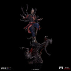 Enfolded by a cape formed by a dark mist of sinister creatures, presenting multiple decrepit and skeletal arms, the macabre zombie figure of the sorcerer hero appears, levitating over a base composed of the demonic shadows of condemned souls. Possessing the cadaveric body starting to show signs of decomposition of his counterpart from another universe, Dr. Stephen Strange uses the knowledge of the Darkhold, the Book of the Damned, conceived in Hell's dimension, to control evil spirits drawn by a forbidden spell, and use them to face the maddened Scarlet Witch. Thus, Iron Studios present their statue "Dead Defender Strange - Doctor Strange in the Multiverse of Madness - Art Scale 1/10", inspired by the iconic scene derivative from the second movie of Marvel's sorcerer supreme.