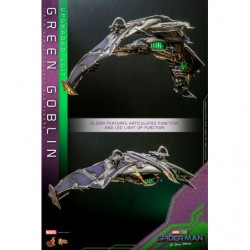Expertly crafted based on Norman Osborn/ Green Goblin's maniacal portrait in Spider-Man: No Way Home, the movie-accurate figure features a newly developed head sculpt of Willem Dafoe as Norman Osborn with separate rolling eyeballs, realistic wrinkles, and hair sculpture. His upgraded costume painted in metallic green color with battle-damaged effects, a distressed poncho, highly-detailed accessories including goggles, pumpkin bombs, attachable blades, his trademark Goblin Glider in one-sixth scale with LED light-up design and articulated function.