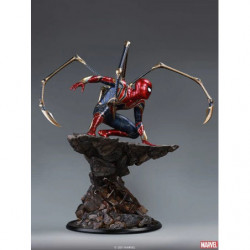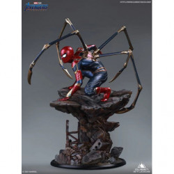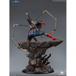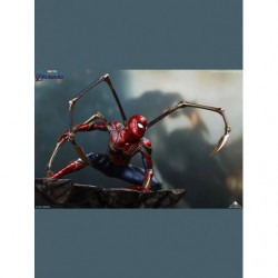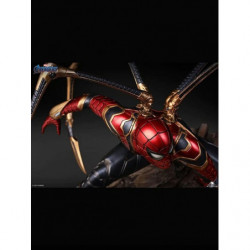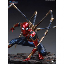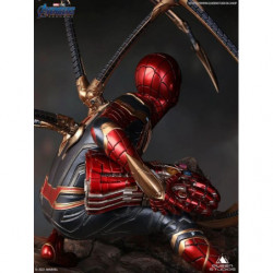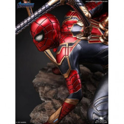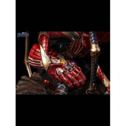 The 1/4 Iron Spider-Man statue is a movie accurate depicton of Item 17A from Avengers: Endgame. As Parker clutches Stark's Infinity Gauntlet, he squats in his iconic red & blue Spidey armor, with a gold trim. Activating Instant-Kill mode, his eyes light-up red, and four mechanical legs sprawl from his back on to the jagged space rock. The space rock adds a perfect contrast to the high-tech suit, highlighting the intricate detailing in one of Stark's best creations.