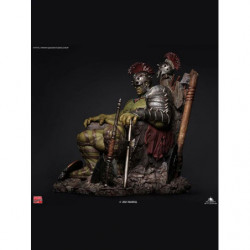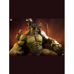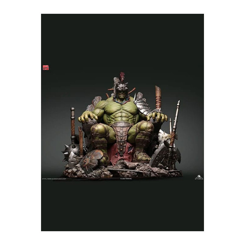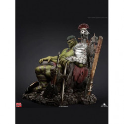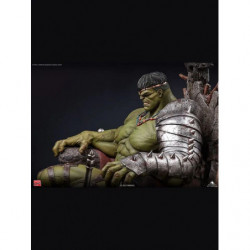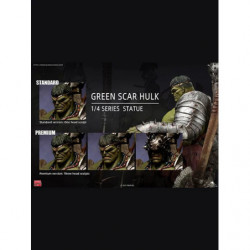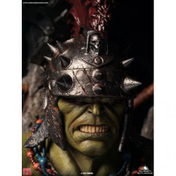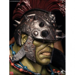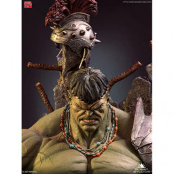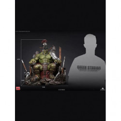The "Green Scar" Hulk is a tragic character with origins in Marvel Comics Planet Hulk. After the Green Scar Hulk witnessed the death of his family and friends, he wages war to enact revenge against the suspected culprits. The Queen Studios 1/4 statue is based on the Green Scar Hulk from the cover of World War Hulk (2007) #4, which many recognise as the iconic character that inspired Gladiator Hulk from Thor Ragnarok.