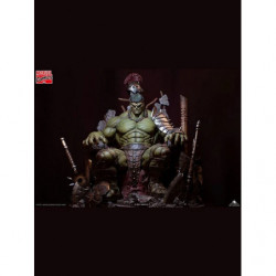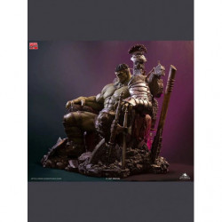 This limited edition Green Scar Hulk depicts the Comic Book character with remarkable detail. Queen Studios' artists have worked hard to capture his ripped physique and pulsating veins, as well as the weathered and worn weapons surrounding his throne of stone. Painted to perfection, the final statue encapsulates the essence of the Green Scar Hulk that we see on the classic comic book cover. Brooding and plotting, there is no doubt, Hulk is ready to smash!