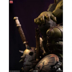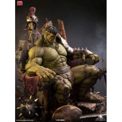 The Green Scar Hulk is a tortured character with a tragic past. To capture the character's inner demons, this 1/4 Hulk statue includes three unique head sculpts. Each sculpt features the Green Goliath looking forward menacingly as he grips his throne. The Regular Edition sees the Hulk with his lips pursed together. While the Premium Edition features the same head sculpt with two additional sculpts. One gritted teeth no helmet. The other with gritted teeth and his gladiator helmet.