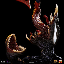 Flexing his mighty muscles, the legendary friendly neighborhood superhero uses the maximum of his arachnid strength and dexterity to dodge and stay away from the attack of one of his most terrifying and powerful enemies, with the viscous tar alien biomass that form his rival leaking underneath his feet, with tentacles and tendrils taking the shape of two trunks with mouths, fangs and long tongues trying to capture him like two carnivorous plants searching for their prey, the fearless wall climber superhero leans resolute on his webs facing the powerful and lethal creature. Inspired by his bold look in the comic books from the 1990s, Iron Studios present the statue "Spider-Man Deluxe - Spider-Man vs Villains - Art Scale 1/10", introducing the always epic clash between the amazing Spider-Man and the alien Symbiote Venom, in which the set can be joined by the statue "Venom Deluxe - Spider-Man vs Villains - Art Scale 1/10", with the sinister villain in another exclusive version by Iron Studios.