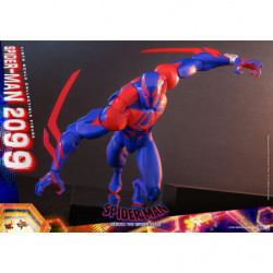 The screen-accurate Spider-Man figure of Spider-Man 2099 includes a newly developed Miguel O'Hara head sculpt with separate rolling eyeball system, an interchangeable masked head, and a specialized body that portrays his hulking physique to complete his look. All the focus remains on the Spider-Man 2099 Suit with luminous reflective patterns in blue to recreate his energy effects, a skull-like Spider logo raised on the chest, spikes on arm, and a translucent red webcape. The figure also comes with amazing accessories such as hands with attacking effect, stylized web accessories in translucent red, a time-traveling device, base camp-themed backdrop, and a figure stand for dynamic poses.