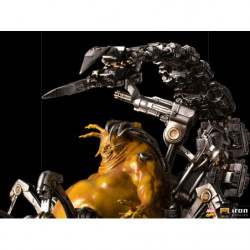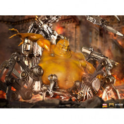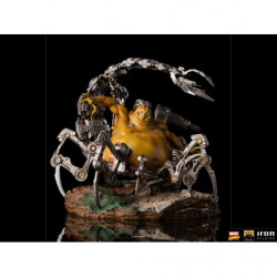 As if he's come straight out of a nightmare, a burly, misshapen, yellow-skinned being moves like an arachnid. Moved by mechanical paws that come out of a motorized platform to transport his obese body, and supported by a metallic tail, in place of his spine, just like a scorpion, as the tip of his tail releases deadly resources, with claws and particle beam weapons. A fearsome interdimensional sorcerer, master of manipulation and machinist of his universe, he advances, atop a base that resembles the gardens of Mansion X, along with other mutant super-villains, in a diorama setting, alongside Magneto and Robots Sentinels versus the X-Men. For fans and collectors, from the dimension that adds his name, Iron Studios proudly presents its statue "Mojo - X-Men - BDS Art Scale 1/10".