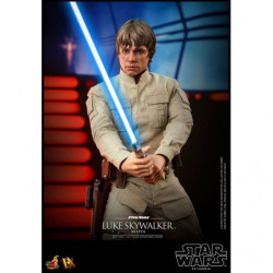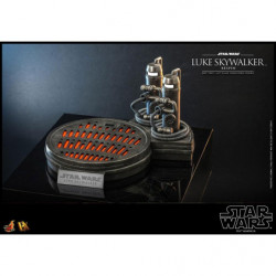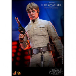 The highly-accurate collectible figure is meticulously crafted based on Luke Skywalker's appearance in the movie. It features a head sculpt with remarkable likeness and separate rolling eyeballs, two styles of interchangeable hair sculptures, finely tailored outfit, a LED light-up lightsaber, an interchangeable lightsaber blade emulating the weapon in motion, a blaster, and a carbon-freezing chamber themed base!