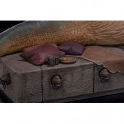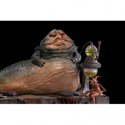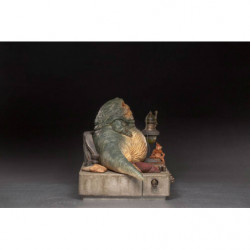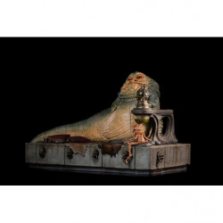 With his cruel eyes, the unscrupulous lord of crime judges his victims and watches his henchmen, resting his grotesque and greasy body on his throne, which is shaped like a concrete platform. His throne is surrounded by adornments in the form of bronze cyclopes, which have rings between their teeth to chain their slaves. The crime lord sits between fur cushions with a rustic hookah beside him, for his smoking pleasure, next to his mascot, and court jester, Salacious B. Crumb, a creature known as the Kowakian lizard monkey. In this way, Iron Studios presents its statue"Jabba The Hutt Deluxe Art Scale 1/10 - Star Wars - Iron Studios", with the monstrous villain replicated as in his appearance in the sixth episode of the saga in theaters in "Star Wars: Return of the Jedi "from 1983.