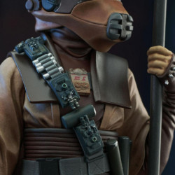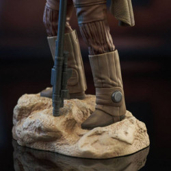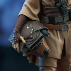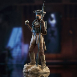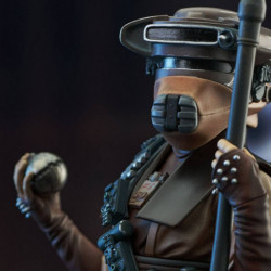 Princess no more, Leia Organa goes undercover to rescue her true love in this all-new Star Wars statue by Gentle Giant Ltd. Disguised as Boushh, a bounty hunter, Leia holds a electro-shock lance and features an interchangeable head so she can wear or hold her helmet, and if you change out her right arm she?s holding a thermal detonator! Standing approximately 10 inches tall and limited to only 3000 pieces, she comes packaged with a certificate of authenticity in a full-color box.