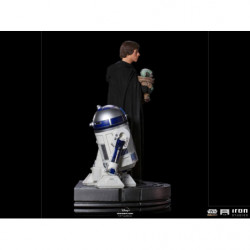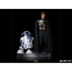 Alongside his old droid, his partner in many adventures and battles, the imposing figure dressed all in black carries in his right arm a small child named Grogu, who looks like his old master Yoda and has a strong connection with The Force. Everything indicates that the powerful and now Jedi Master came to answer the call of the little being, affectionately called Baby Yoda by the fans, as he now follows as an apprentice to his new guardian. Derived from one of the most memorable and iconic scenes from the final episode of the second season of the series The Mandalorian, Iron Studios presents the statue "Luke Skywalker, R2-D2 and Grogu - Legacy Replica 1/4 - The Mandalorian", with three of the most important and beloved characters from the Star Wars saga united. This hit show is streaming by Disney +.