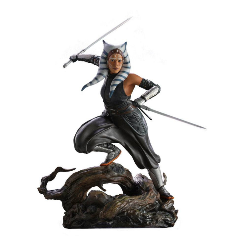 The orange-skinned warrior Togruta is a native of the planet Shili and carrier of the Force. Silent and swift, like a hunting cat, she stealthily moves among the trunks and roots of the forest planet Corvus. Carrying two sabers in each hand, she follows her own ideals of justice and freedom, using all her Jedi training and her long experience in combat, always with the Force. In response to requests from fans and collectors, Iron Studios presents the "Ahsoka Tano - The Mandalorian - BDS Art Scale 1/10" statue, just like the hit series on Disney+.